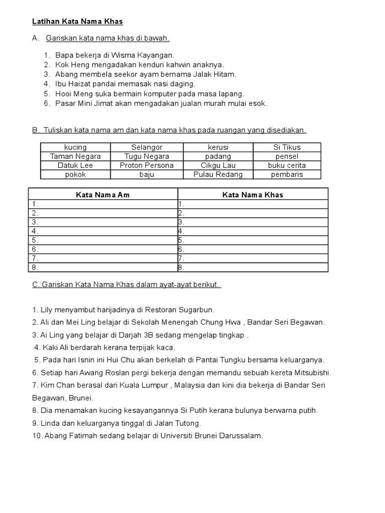 Latihan Kata Nama Am Dan Kata Nama Khas Pdf
